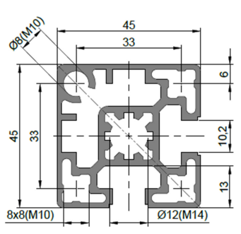 Strut Profile PG45 featuring 10mm T-slot is designed for constructing Heavy weight assemblies such as machine structure frame and workshop partition etc.