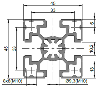 Strut Profile PG45 featuring 10mm T-slot is designed for constructing Heavy weight assemblies such as machine structure frame and workshop partition etc.