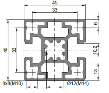 Strut Profile PG45 featuring 10mm T-slot is designed for constructing Heavy weight assemblies such as machine structure frame and workshop partition etc.