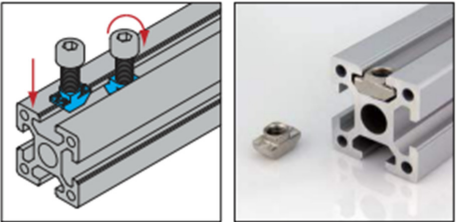 T Nut can be inserted directly at the assembly point, which makes the assembly very efficient, however the connection strength and stability is not as good as preset nut.